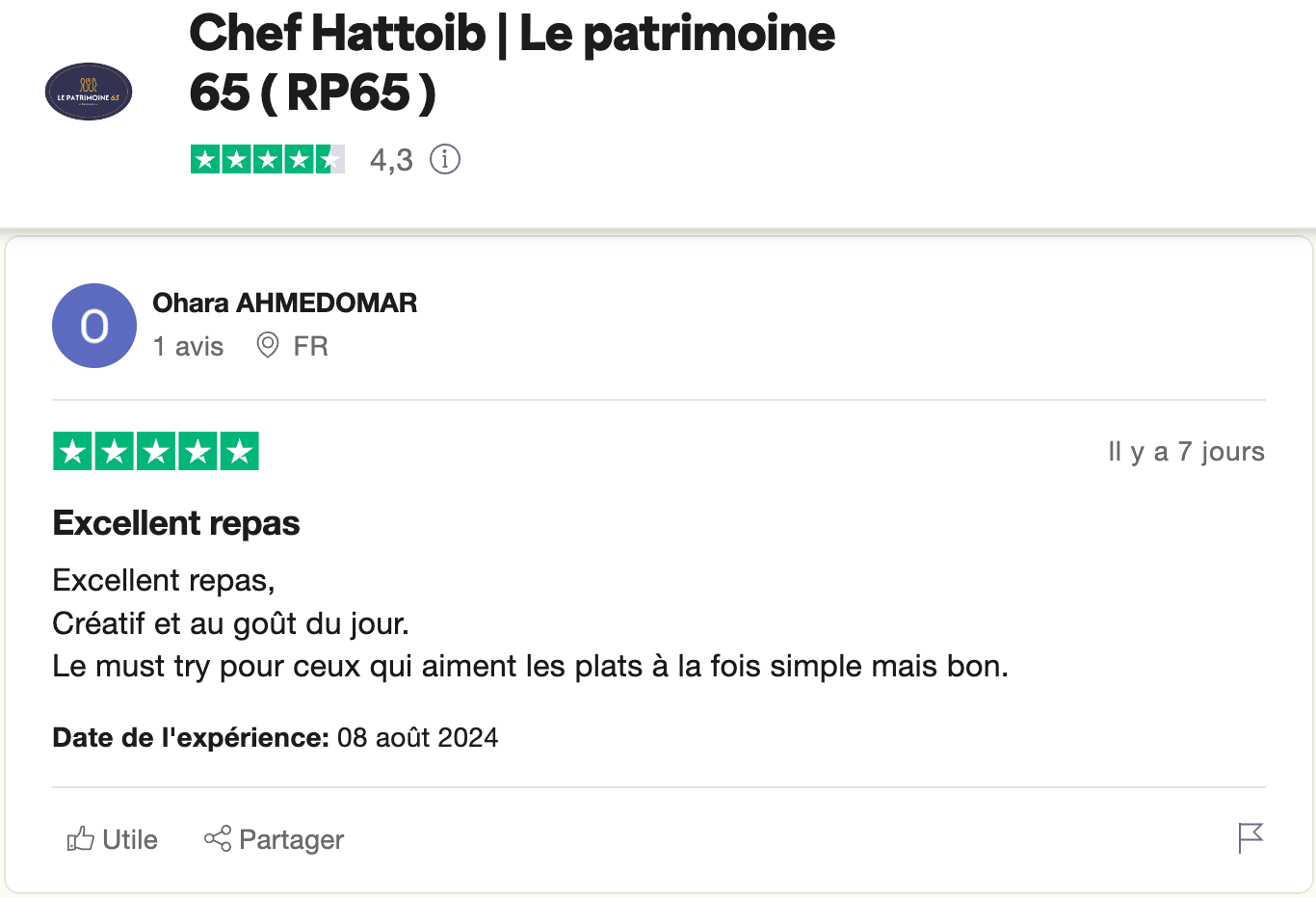 Regardez la video pour localiser le restaurant Le Patrimoine 65 du Chef Hattoib